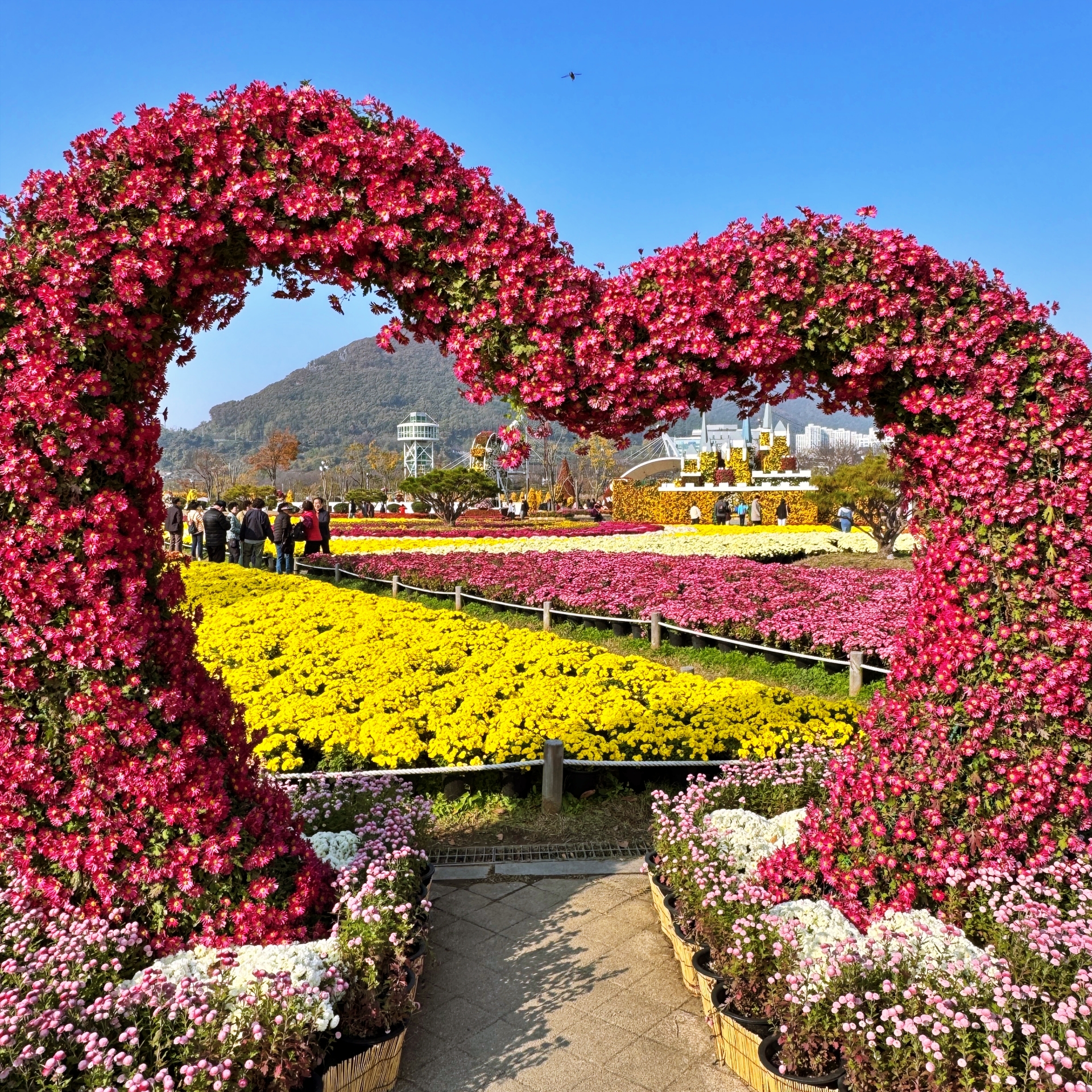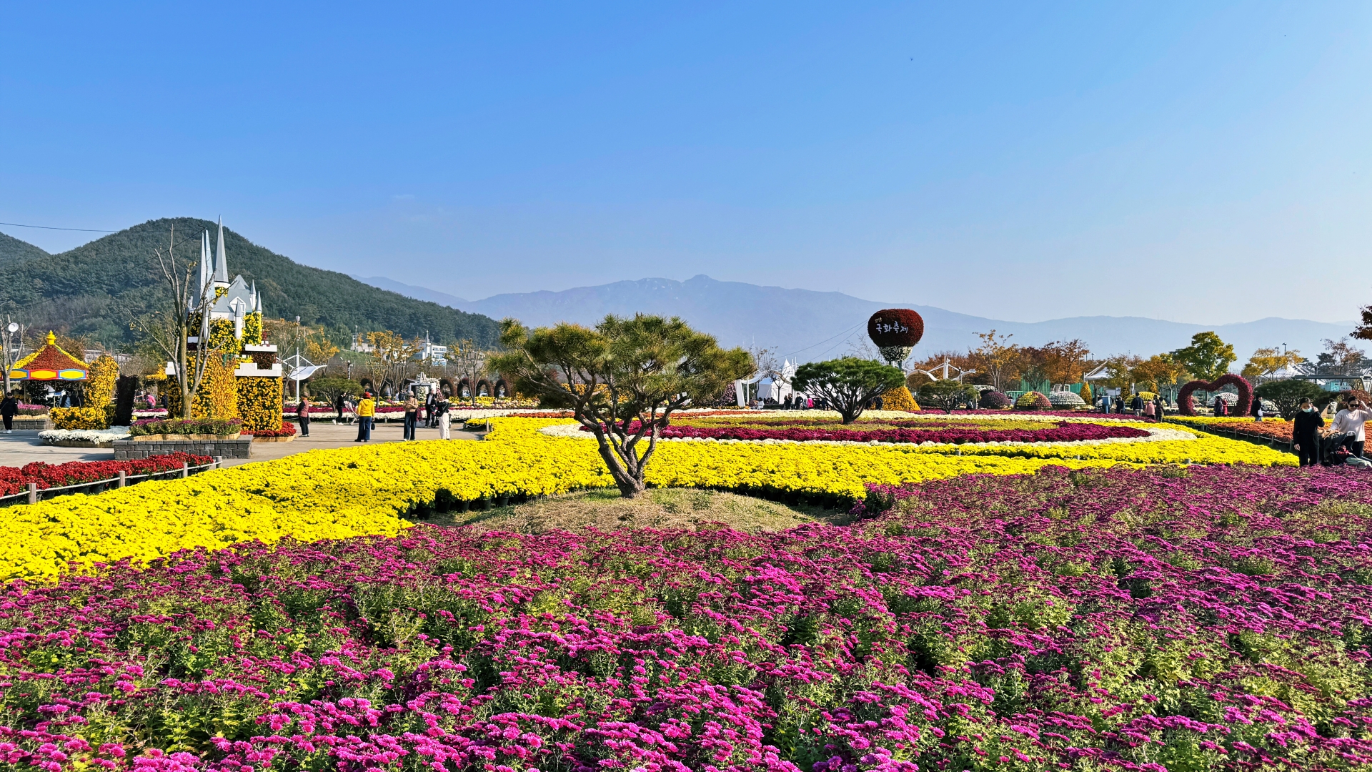 황산공원의 가을 백미는 '양산국화축제' . 2025년 축제는 10월 24일부터 11월 9일까지 예정되었으나, 시민들의 성원에 힘입어 11월 16일까지 연장되었다. 축제에서는 천만 송이 국화와 다양한 조형물 전시를 비롯해 체험 행사, 공연, 먹거리 장터 등 풍성한 즐길 거리를 제공한다.