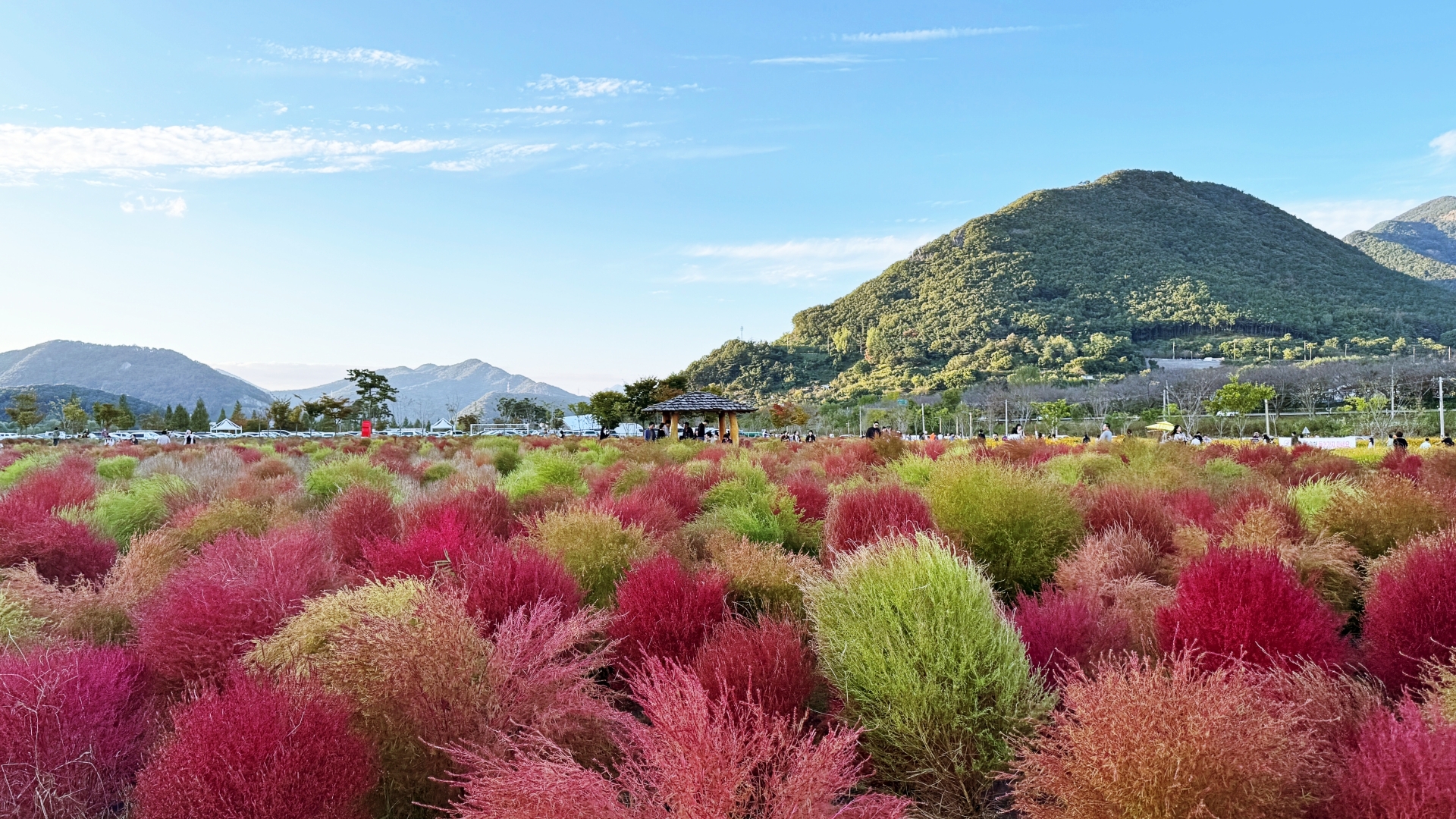 황산공원이 진정한 ‘사계절 명소’로 불리는 데는 이유가 있다. 봄이 되면 벚꽃과 유채꽃이 공원을 환하게 밝히고, 여름에는 물놀이장으로 변신해 가족 단위 피서객들에게 큰 사랑을 받는다. 하지만 이곳의 진가는 가을이 되면서 더욱 또렷해진다.