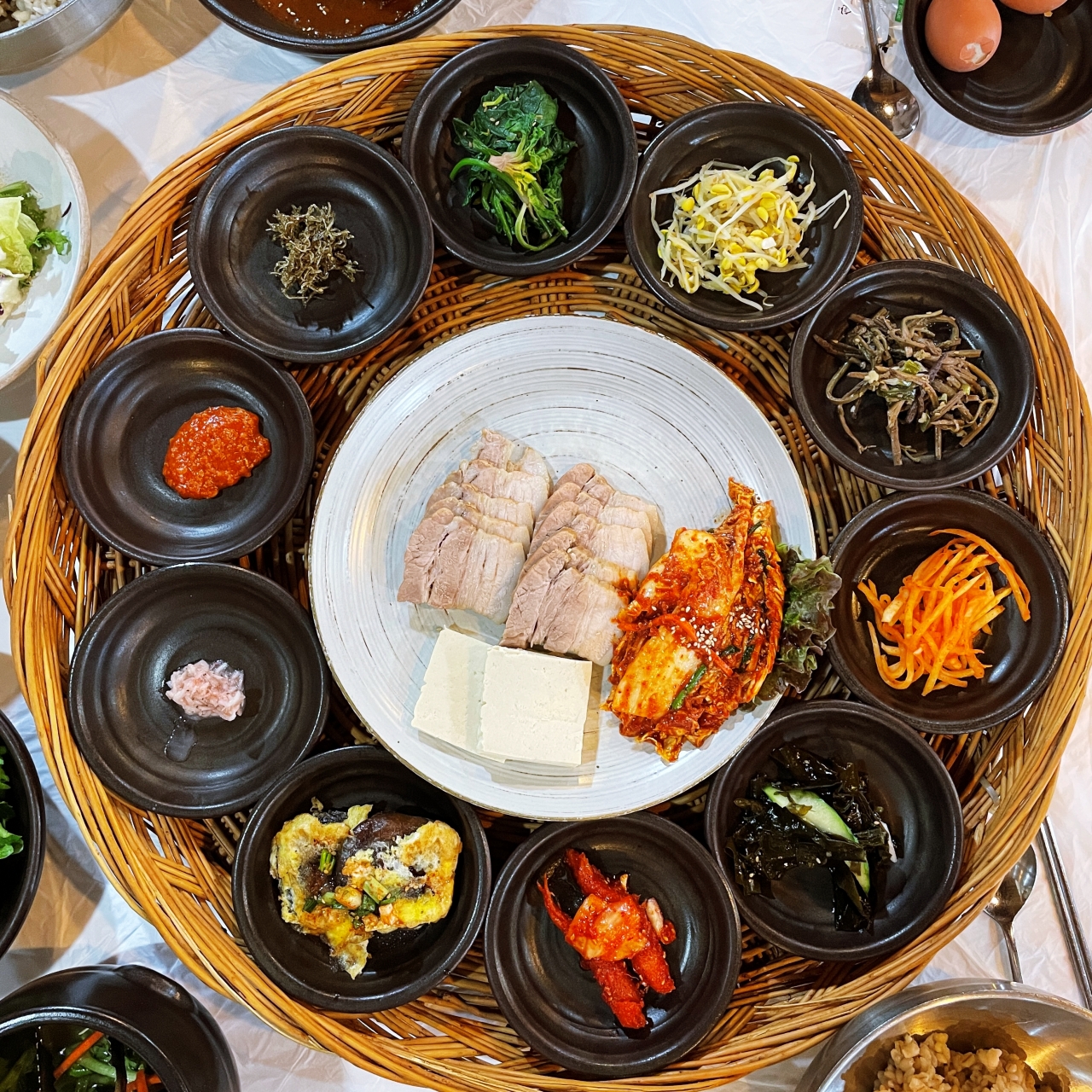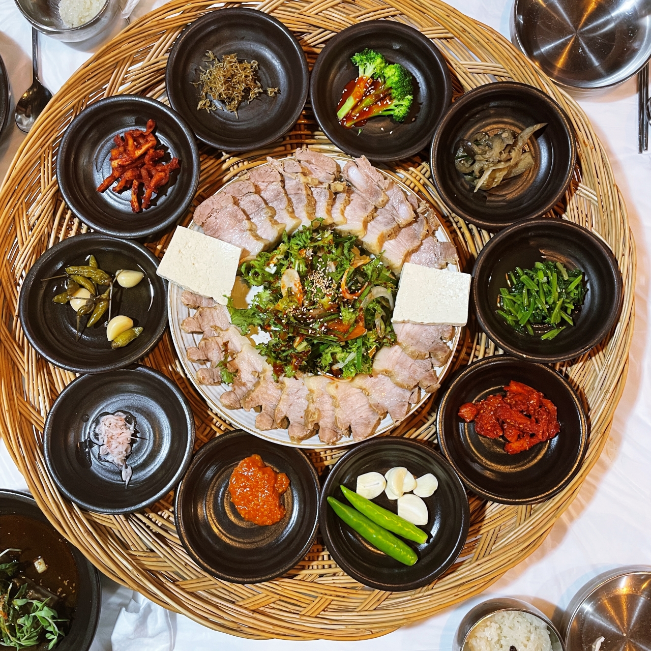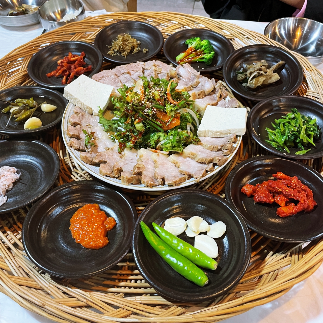 보쌈 맛도 괜챦고 깔끔한 반찬들이 소쿠리에 담겨져 나오는 것도 신의 한수..고기도 잘 삶겨 보들보들. 냄새도 없다. 다만 일반 보쌈처럼 보쌈김치과 같이 안나와 아쉬움. 다만 맛있는 갓 담은 김치가 별도로 나와 같이 먹을 수 있어 괜챦았다.