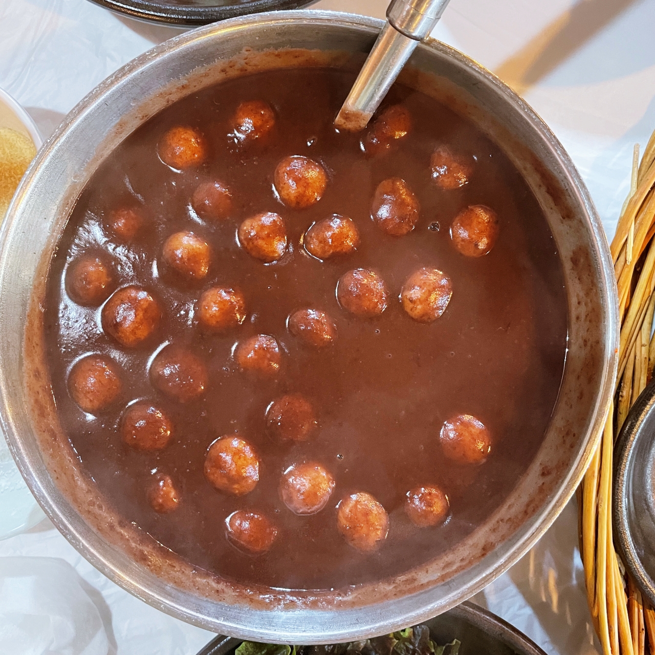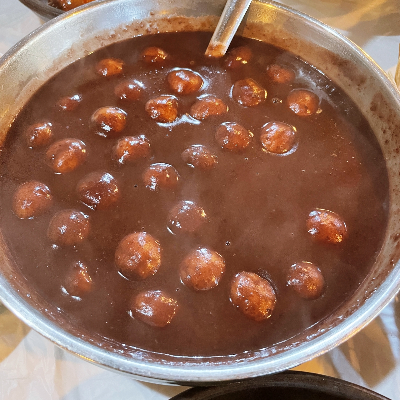 동지팥죽. 두명이서 먹어도 될 정도로 양이 넉넉하다. 무엇보다 새알이 정말 푸짐하게 들어가 있다.