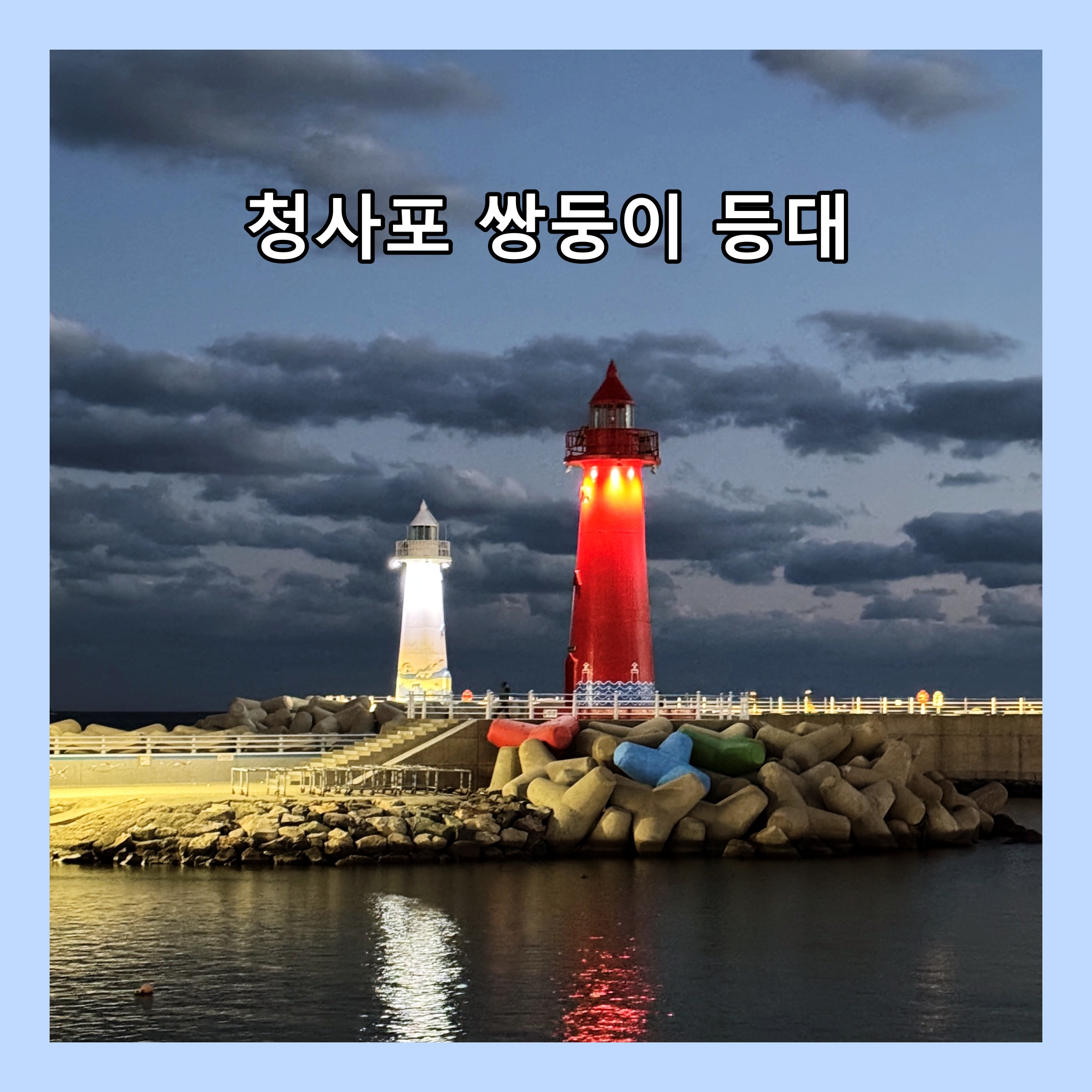 청사포 쌍둥이 등대 모습 (밤)