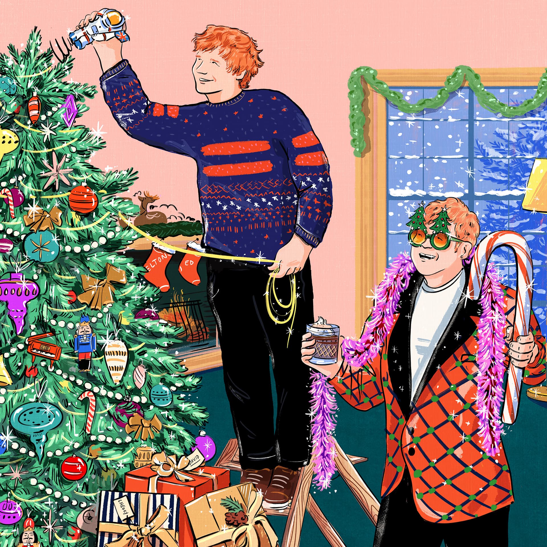 ▒ 에드 시런의 'Merry Christmas'는 영국의 전설적인 가수 엘튼 존(Elton John)과의 협업 곡이다. 2021년 12월 3일에 싱글로 발매된 이 곡은 두 아티스트가 함께 작업한 크리스마스 노래이다. 전통적인 캐롤 분위기와 현대적인 팝 사운드가 조화를 이루며, 뮤직비디오에서는 고전적인 크리스마스 영화 및 다른 유명 캐롤 뮤직비디오의 장면들을 오마주했다. 발매 당시 영국 싱글 차트 1위를 차지했다.