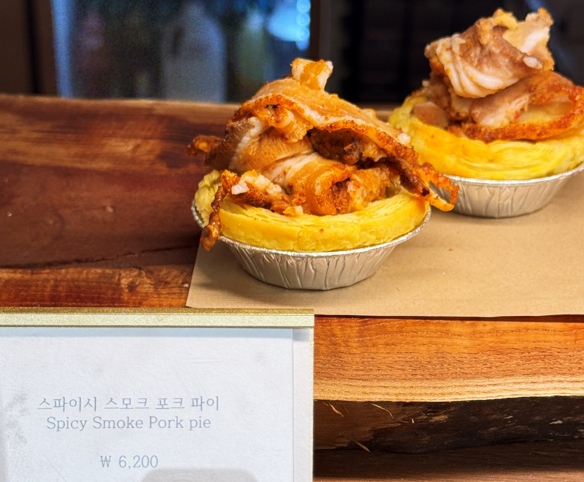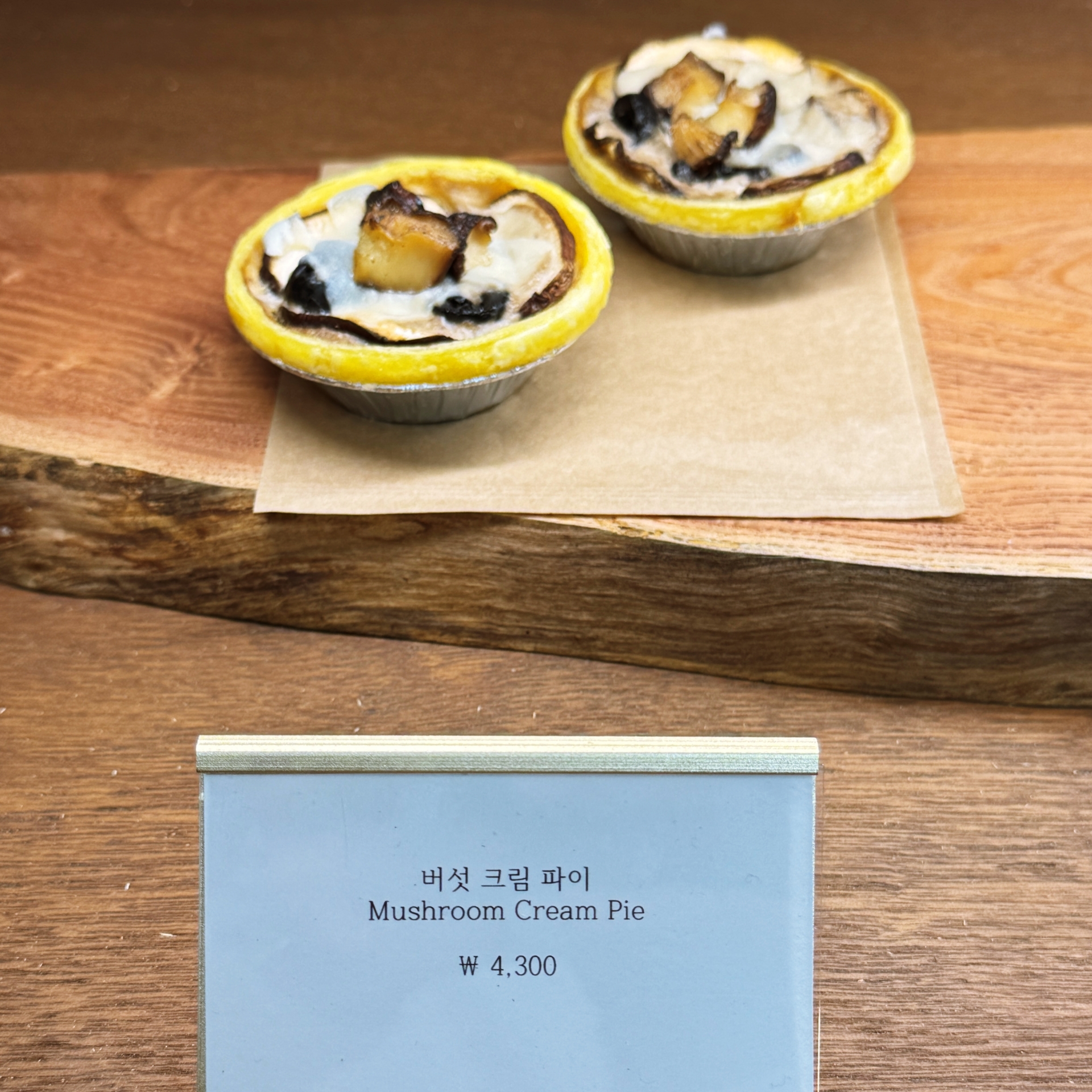 프렌치 30년 경력 쉐프가 만든 수제파이는 보는 것 만으로 즐겁다. 밤파이, 애플시나몬파이, 레몬파이로 구성된 세트 (11,000원), 다양한 견과류의 고소함과 자연스러운 단맛이 어우려져 깊은 풍미를 느낄 수 있는 견과류 파이 (4,300원), 달콤고소한 밤 페이스트와 바삭한 식감의 카카오 초코 크런치가 어우러지는 밤 파이(4,300원), 바삭한 파이에 은은한 계피 향과 달콤한 사과가 어우러진 애플 시나몬 파이 (3,800원),진한 크림치즈를 더한 부드러운 크림에 상큼하고 달콤한 블루베리가 올라간 블루베리 파이 (3,900원), 부드럽고 달콤한 마스카포네 크림이 올라간 상큼한 레몬 크림 파이 (3,500원), 직접 만든 타르트쉘 위에 당일만든 꾸덕한 바치케 파이인 뚱 바스크 치즈파이(8,500원), 훈연 토마토, 그린올리브가 들어간 부드럽고 달콤한 맛의 크림 브륄레 파이 (3,300원) 등 다양한 파이들이 보는 사람을 유혹한다. Large사이즈도 있는데 원가격에 3000원이 추가된다. 파이 3개가 1만원정도 하니 가성비도 좋다.