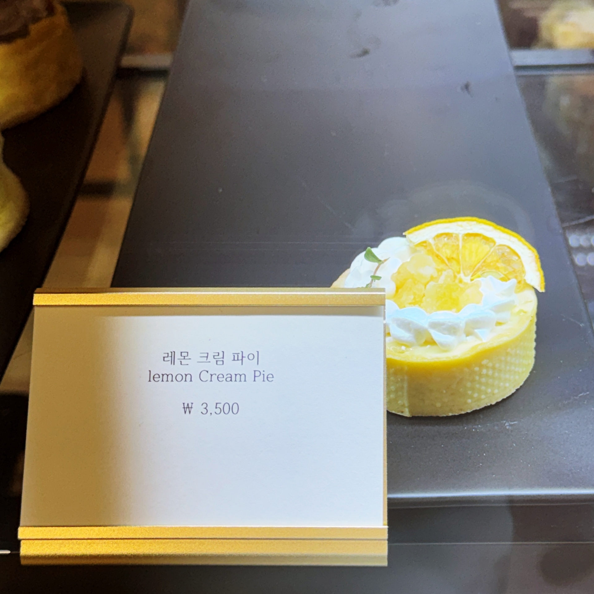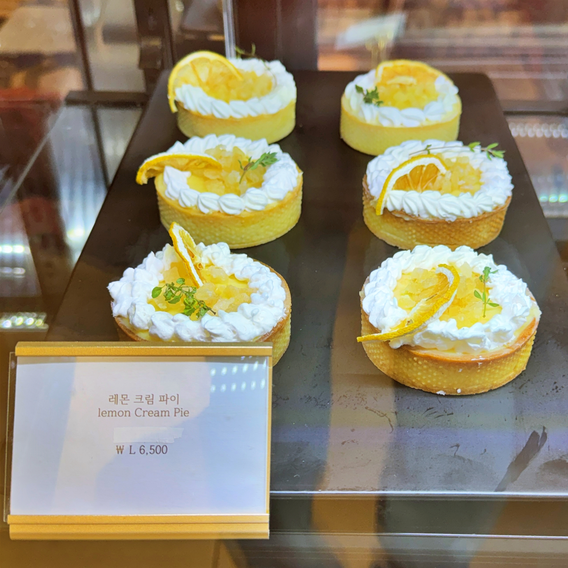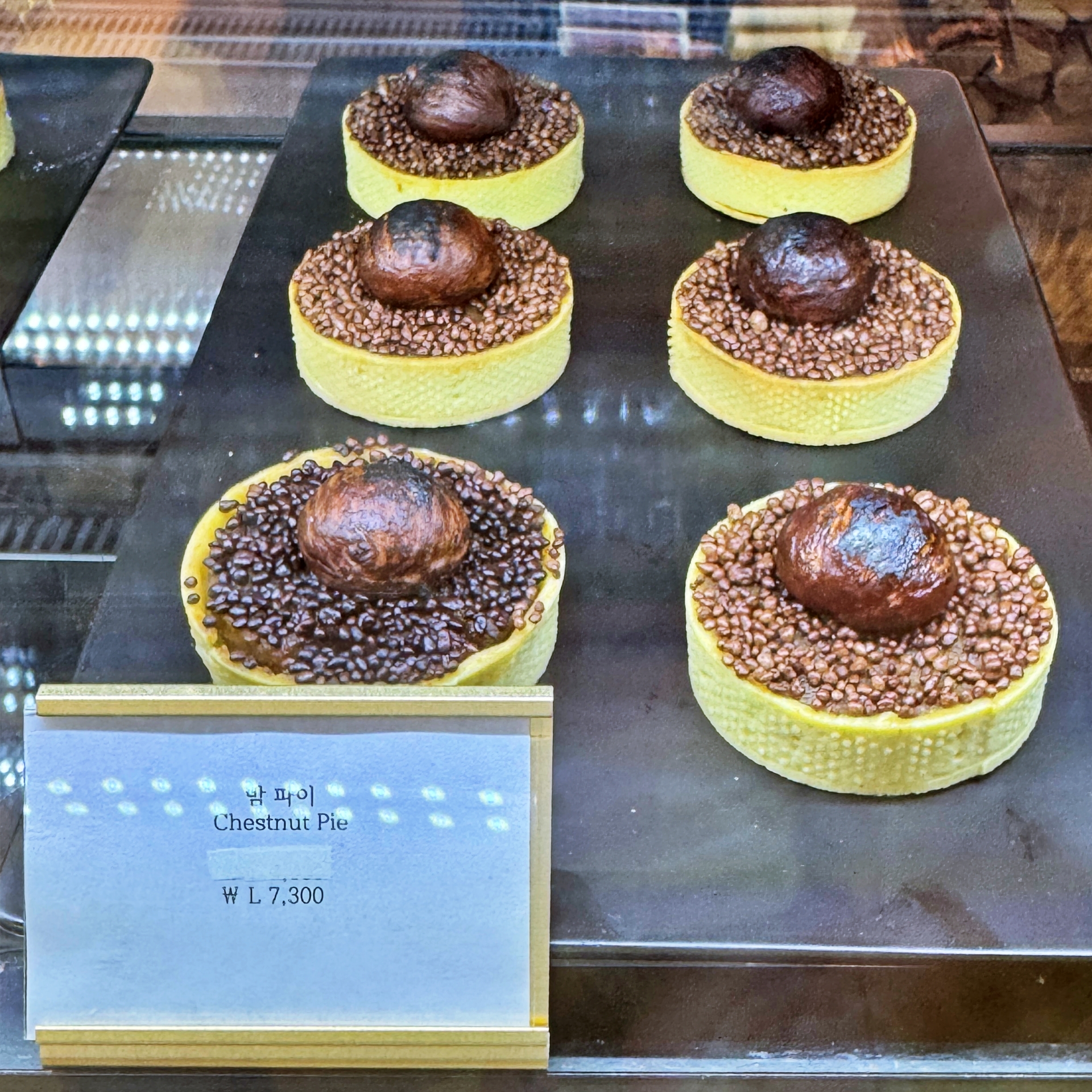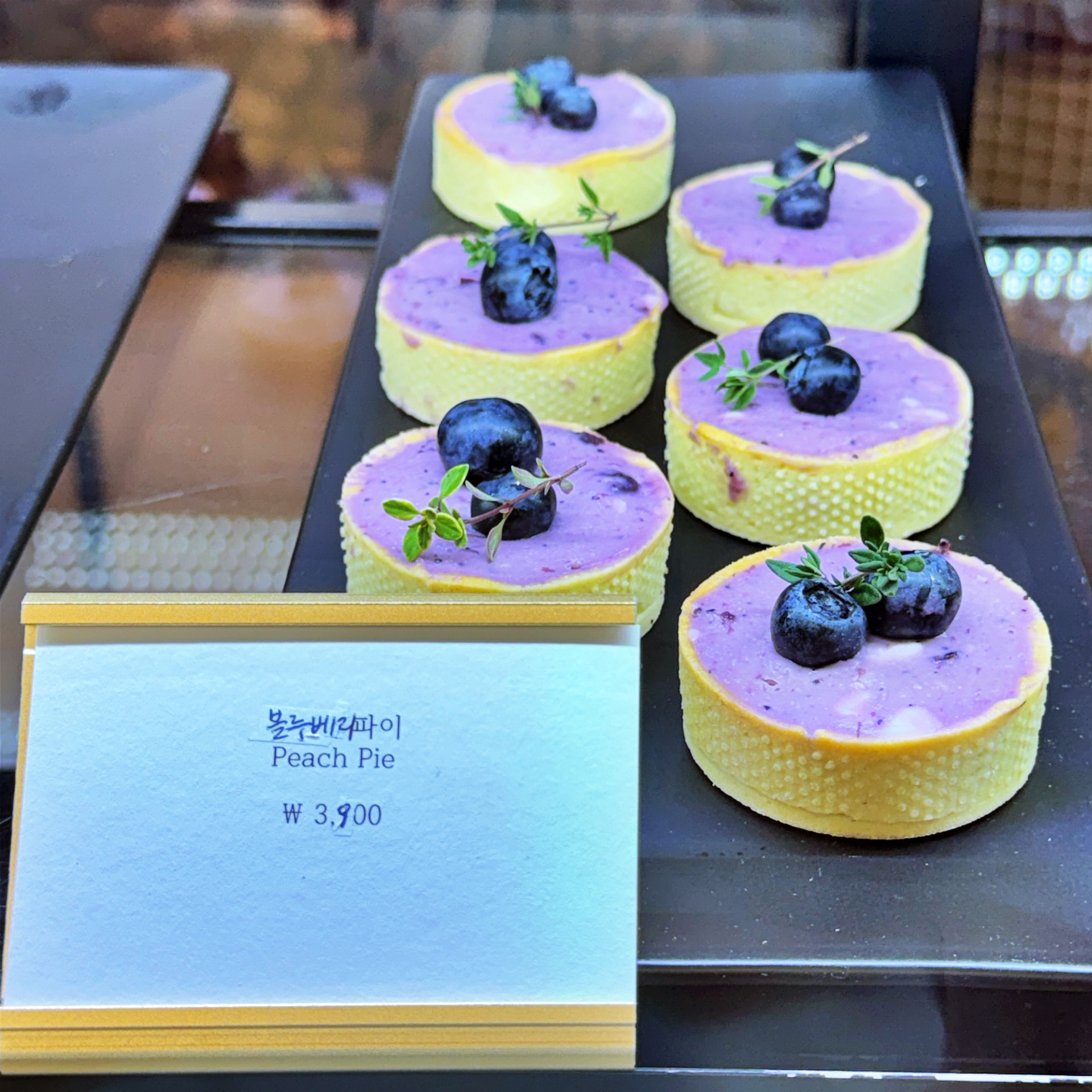우리(2인)은 밤파이, 애플시나몬파이, 레몬파이로 구성된 세트 (11,000원), 견과류 파이 (4,300원) 블루베리 파이 (3,900원), 크림 브륄레 파이 (3,300원)와 함께 아메리카노(3,000원), 화이트와인(콘도르픽토론테스) (6,000원)을 주문해 먹었다.