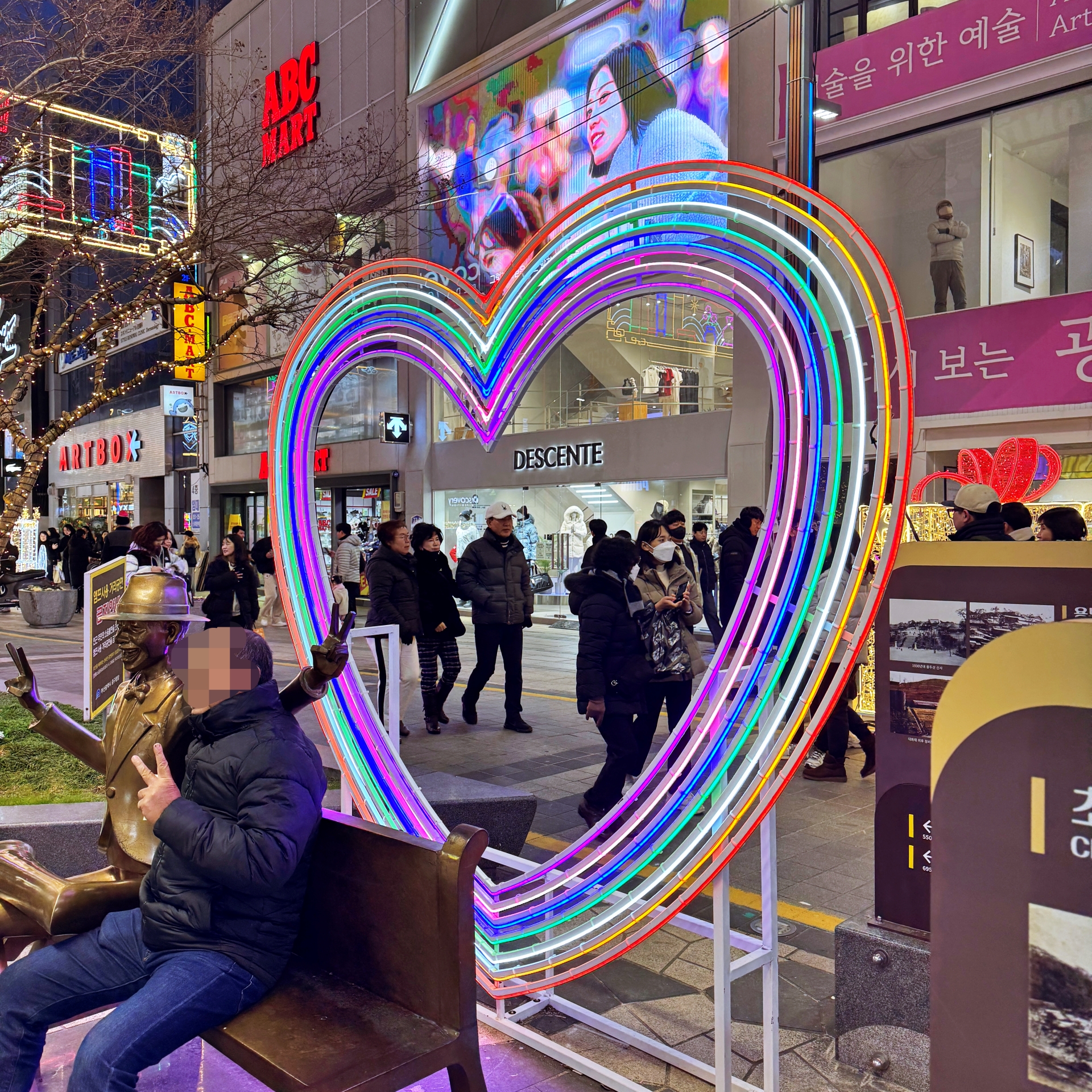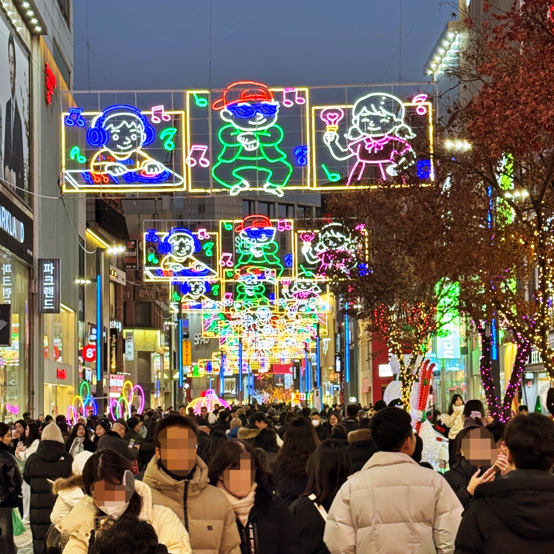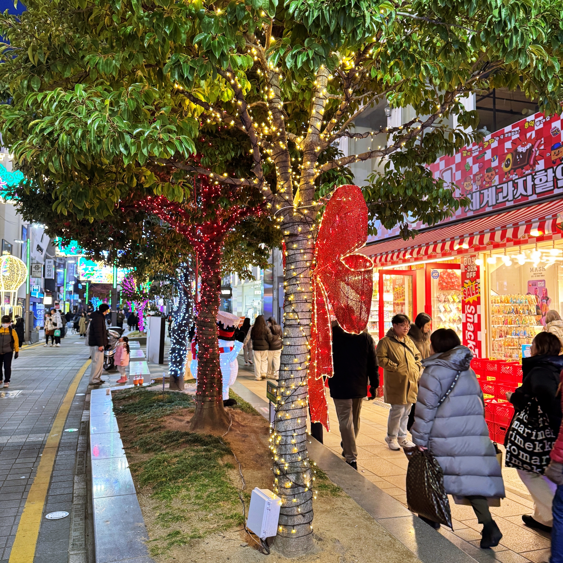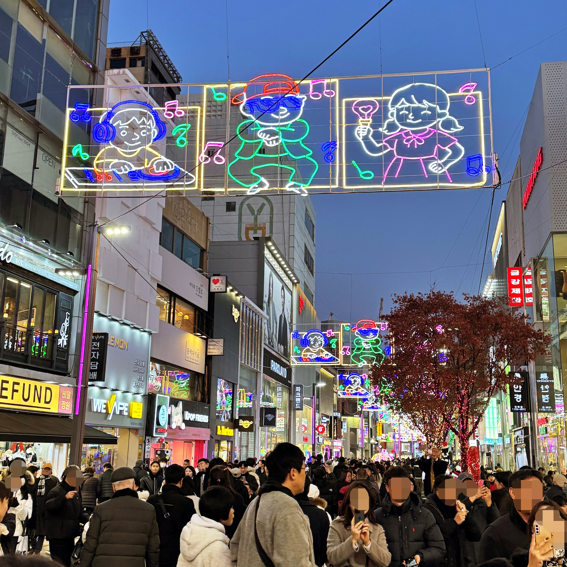 우리가 광복로를 찾았을 때에는 광장 중앙 메인 무대에서는 시민이 직접 트리 불빛을 켜 볼 수 있는 참여향 점등식이 열리고 있었다. 참여 시민들이 카운트다운과 함께 점등을 하는 수간 화려한 트리 조명광복로 일대를 가득 채워나간다.