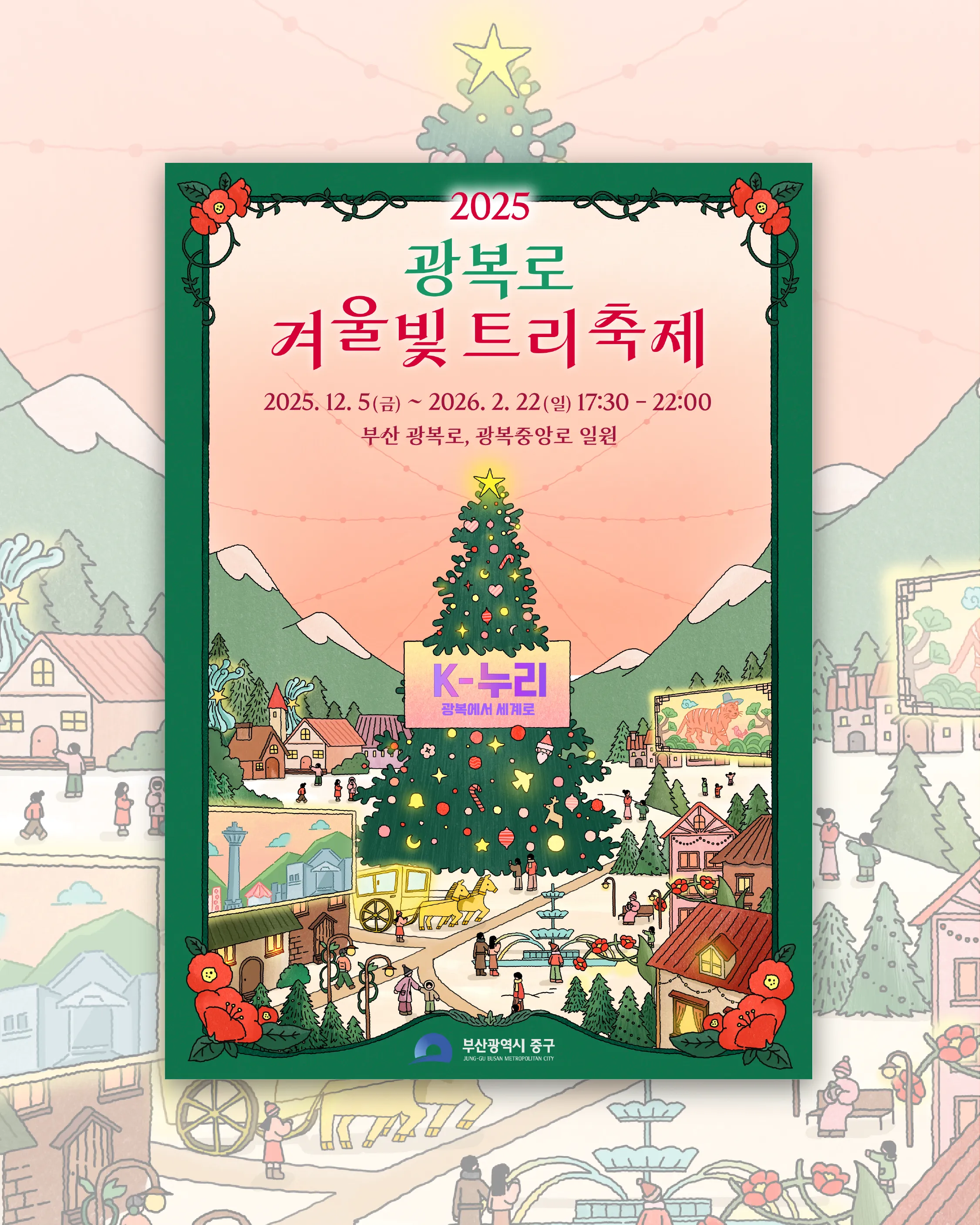 부산의 겨울을 밝히는 대표 트리축제인 '2025 광복로 겨울빛 트리축제'가 2025년 12월 5일부터 26년 2월 22일까지 열리고 있다. 다양한 크기와 모양을 가진 트리가 광복로를 화려하게 수놓는 가운데 부산 지역 뮤지션들의 버스킹 공연, 시민이 직접 트리 불빛을 켜볼 수 있는 참여형 점등식 등 다채로운 거리 이벤트도 준비되어 있다.