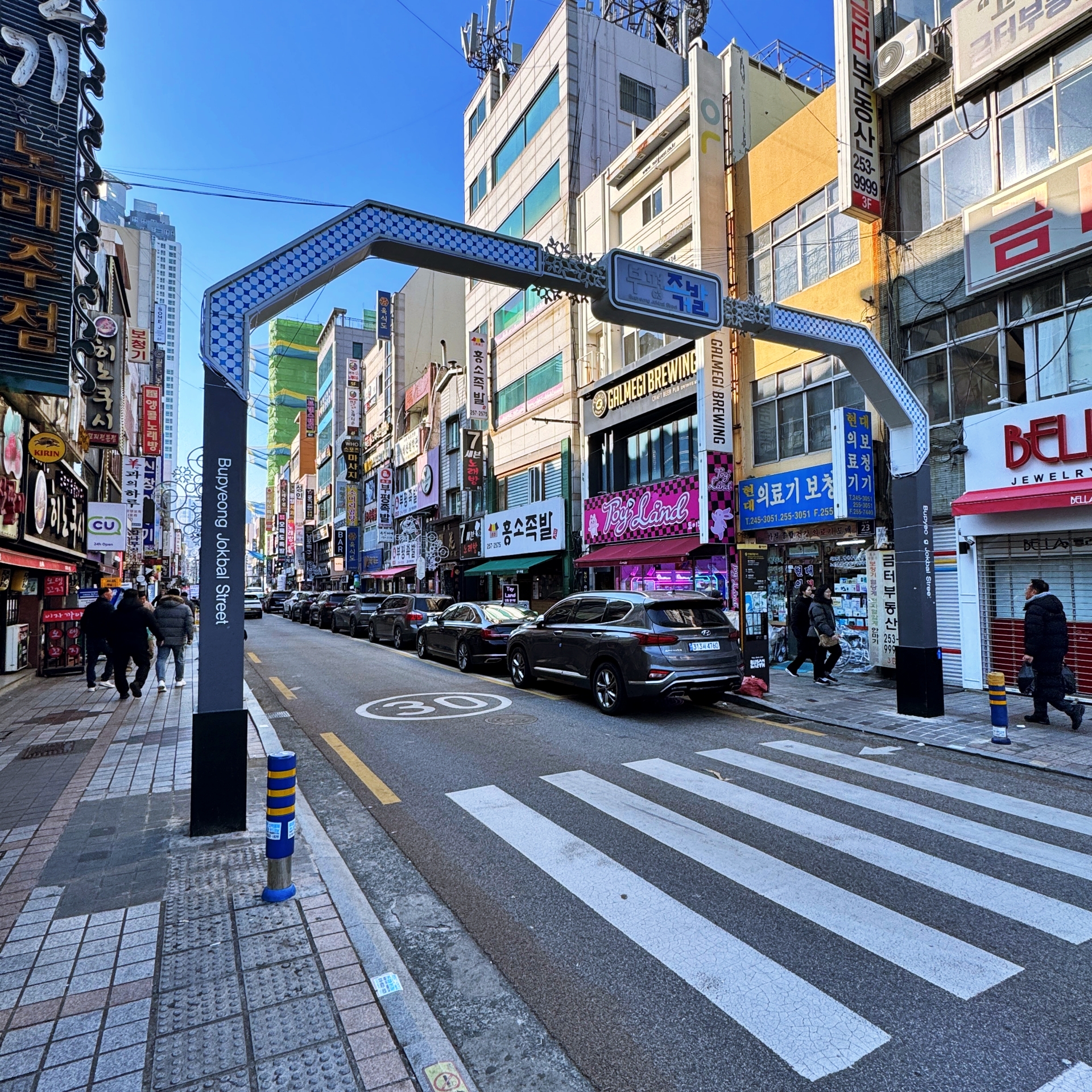 시간이 저녁 7시를 넘기면 미니포차들이 기차처럼 ‘돌돌돌돌’ 소리 내며 줄지어 들어오는 모습을 볼 수 있다. 순식간에 부평깡통시장이 야시장으로 변신하는 순간이다. 통로 한편을 가득 채운 포장마차와 양 옆으로 늘어선 가게들. 길게 뻗은 시장골목을 따라 제대로 세팅된 동그란 테이블과 네모난 플라스틱 의자. 밤이 깊어갈수록 먹거리는 더 풍성해지고 삼삼오오 둘러앉아 한 잔 기울이는 사람들의 얼굴에는 즐거운 미소가 가득하다.