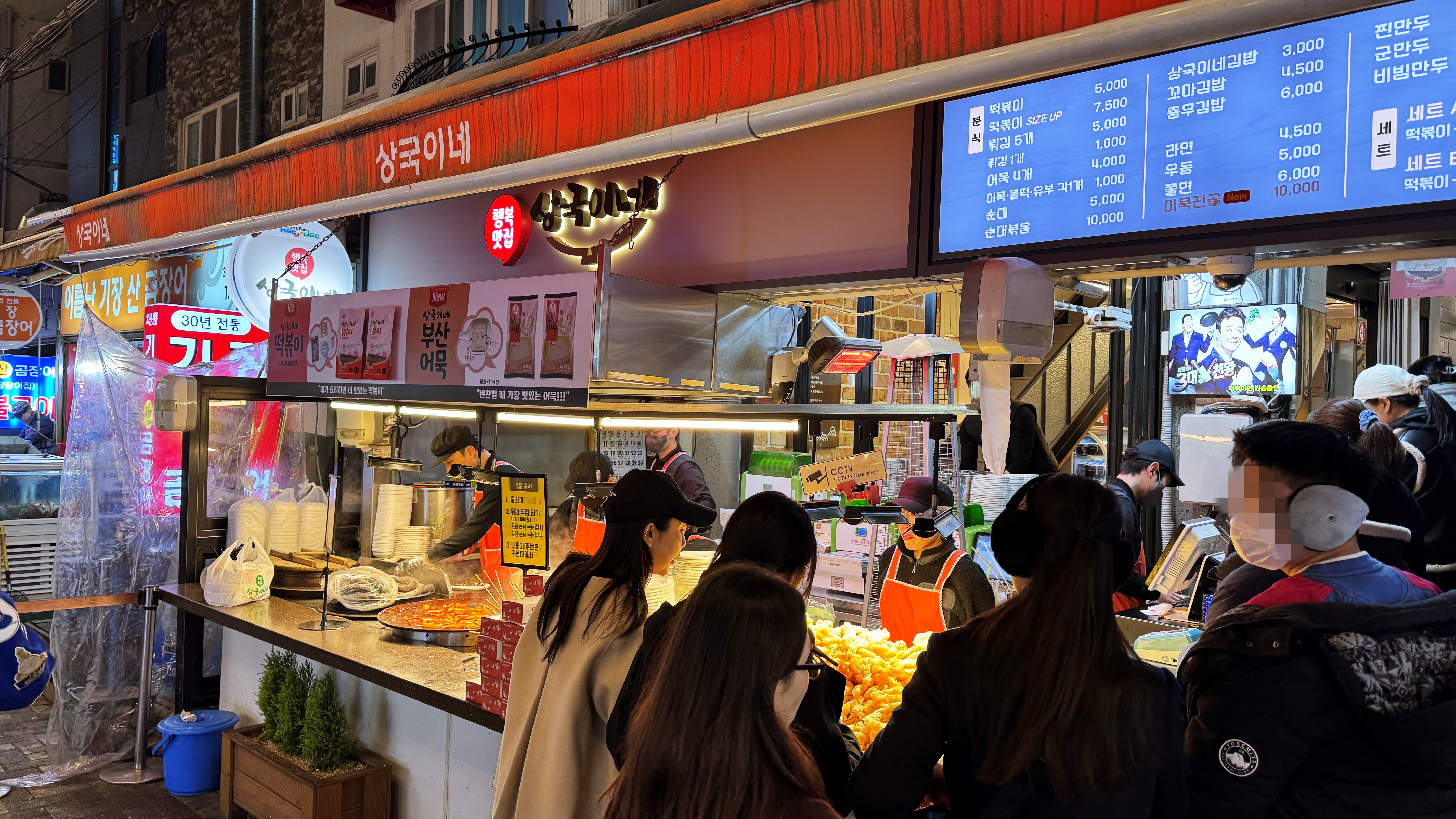 가격은 빨간떡볶이가 조금 더 저렴 (상국이네 5,000원, 빨간 떡볶이 3,500원). 그런데 상국이네는 떡볶이 떡을 굵은 가래떡을 써 양이 많다. 양념도 상국이네가 조금 더 달콤매콤한 맛인 반면 빨간떡볶이는 덜 달면서 더 매운편이다. 떡볶이와 함께 먹으면 좋은 오뎅국물은 빨간떡볶이가 더 시원하고 깔끔한 맛이다.오뎅도 빨간떡볶이보다 상국이네가 가격이 비싼 편이나 대신 상국이네 오뎅이 좀 더 질 좋은 오뎅을 쓴다. 순대는 빨간떡볶이가 훨씬 찰지고 맛있다.