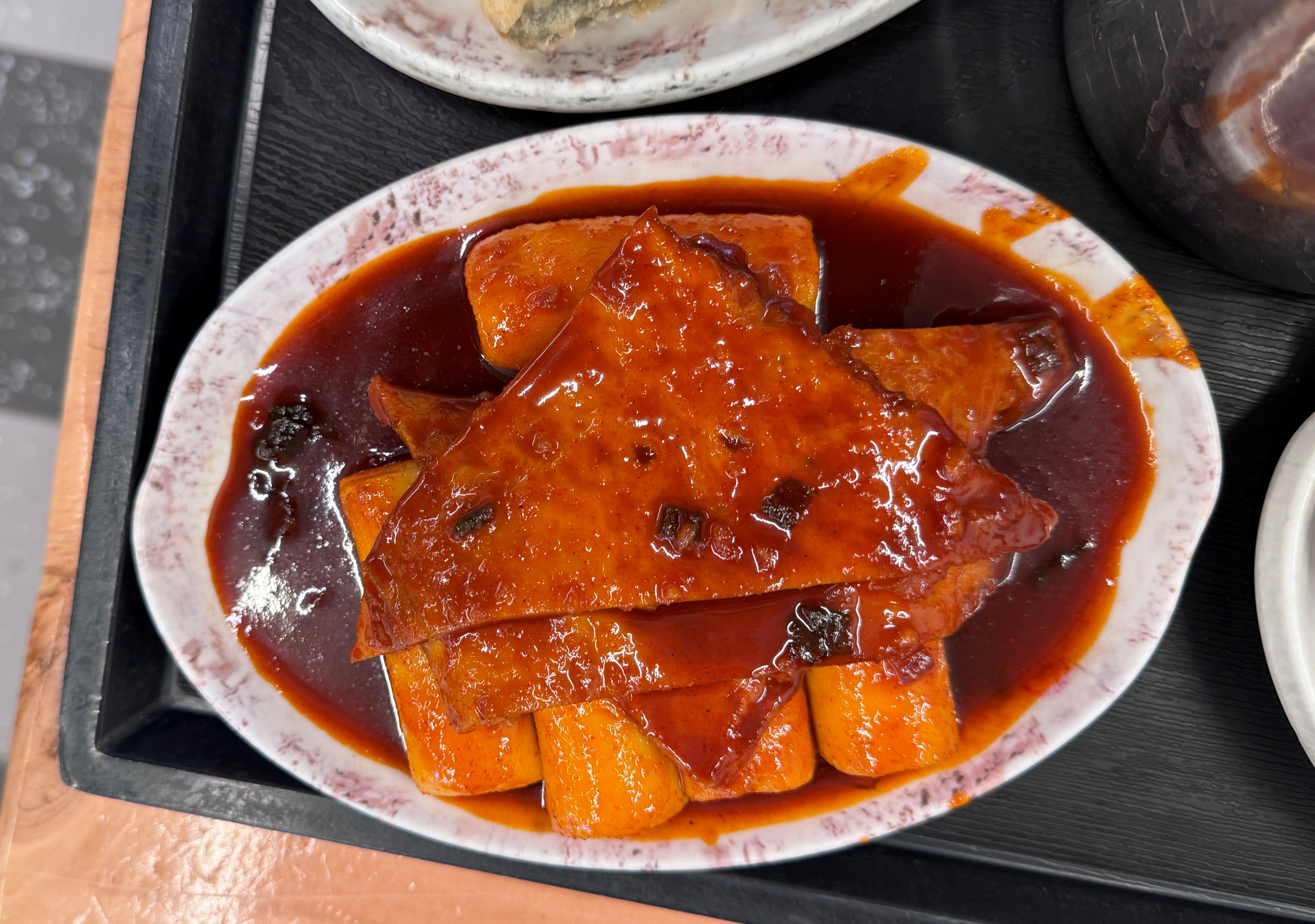 '백종원의 3대천왕'에서도 소개된 바 있는 떡볶이. 이 집의 떡볶이의 가장 큰 특징은 떡볶이 떡을 가래떡을 쓴다는 것. 떡 굵기가 가래떡처럼 굵다. 그리고 쌀 떡이라 졸깃졸깃한 것이 마치 가래떡을 떡볶이 국물에 찍어 먹는 기분이다. 떡과 함께 들어가 있는 어묵도 부산어묵이라 맛있다.